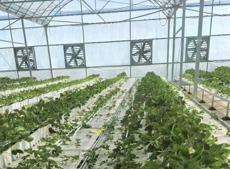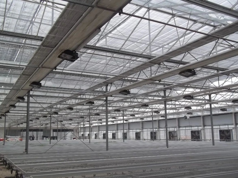 The main beam of greenhouse adopts truss beam, which has strong bearing capacity. The roof distributes light evenly throughout the room. The main steel structure adopts hot-dip galvanized pipe, which is convenient and quick to install. The greenhouse is equipped with sunshade system, fan, wet curtain strong cooling system, anti-condensation system, skylight ventilation system, heating system, intelligent control system, mobile seedling bed system, water and fertilizer system, automatic sprinkler system, power distribution system, etc.